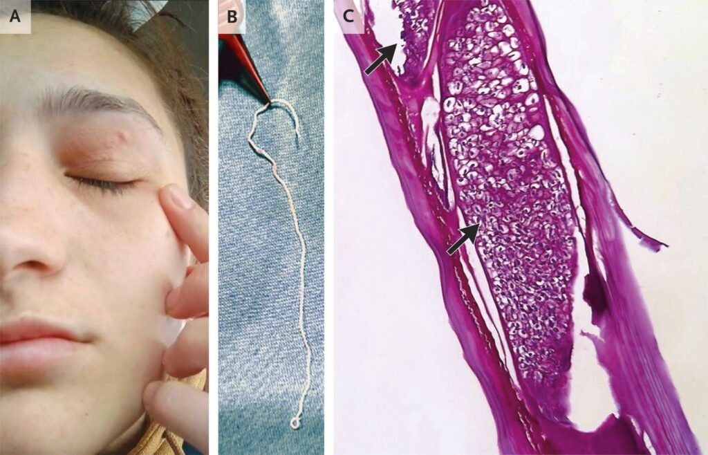 Uma Surpreendente Infecção Parasitária nos Olhos Uma mulher saudável de 26 anos chegou ao pronto-socorro com uma “lesão que se